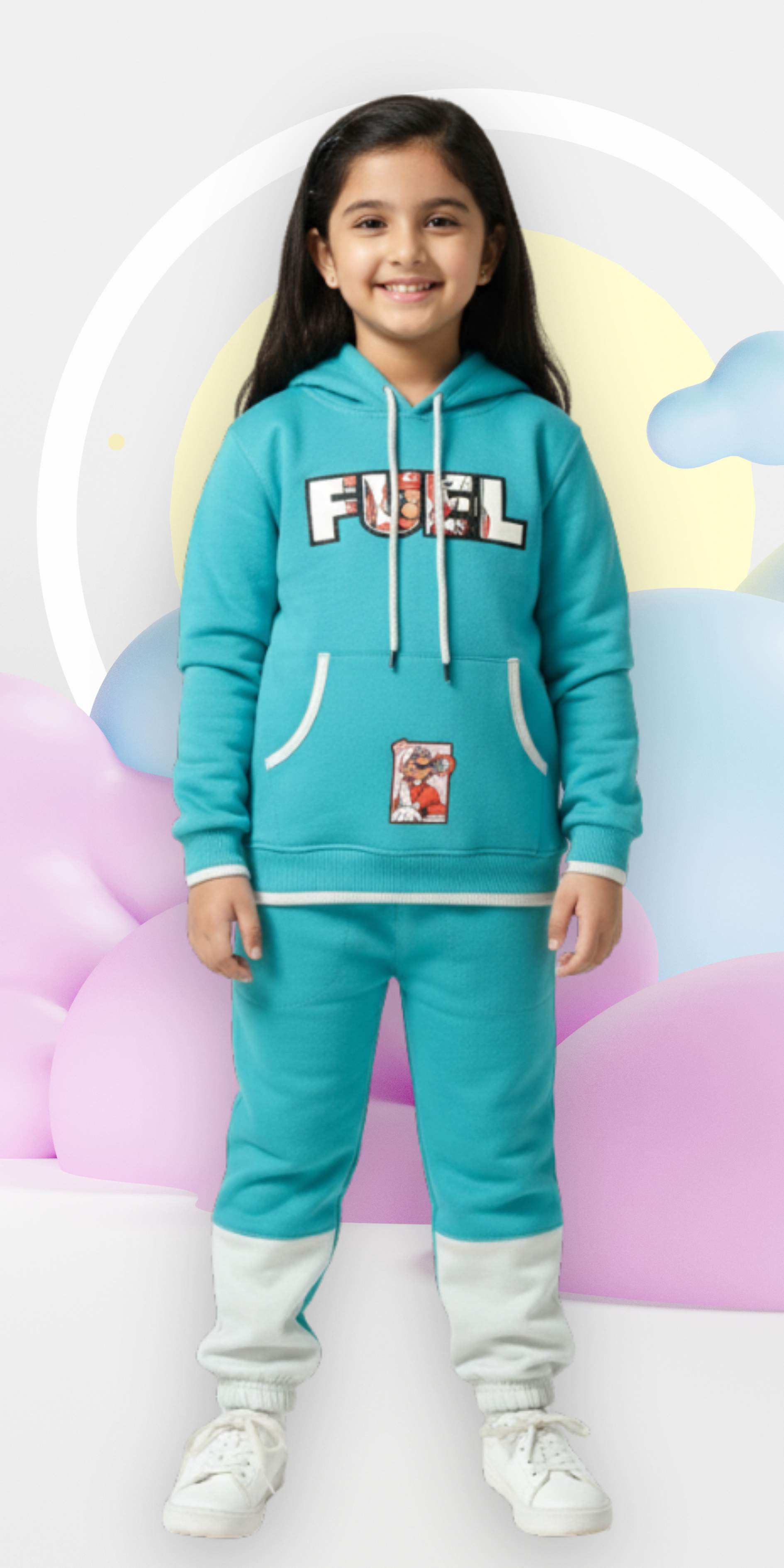 Fuel Mario Full Sleeves Hoodie Sweatshirt with Pocket and Joggers Set | Red