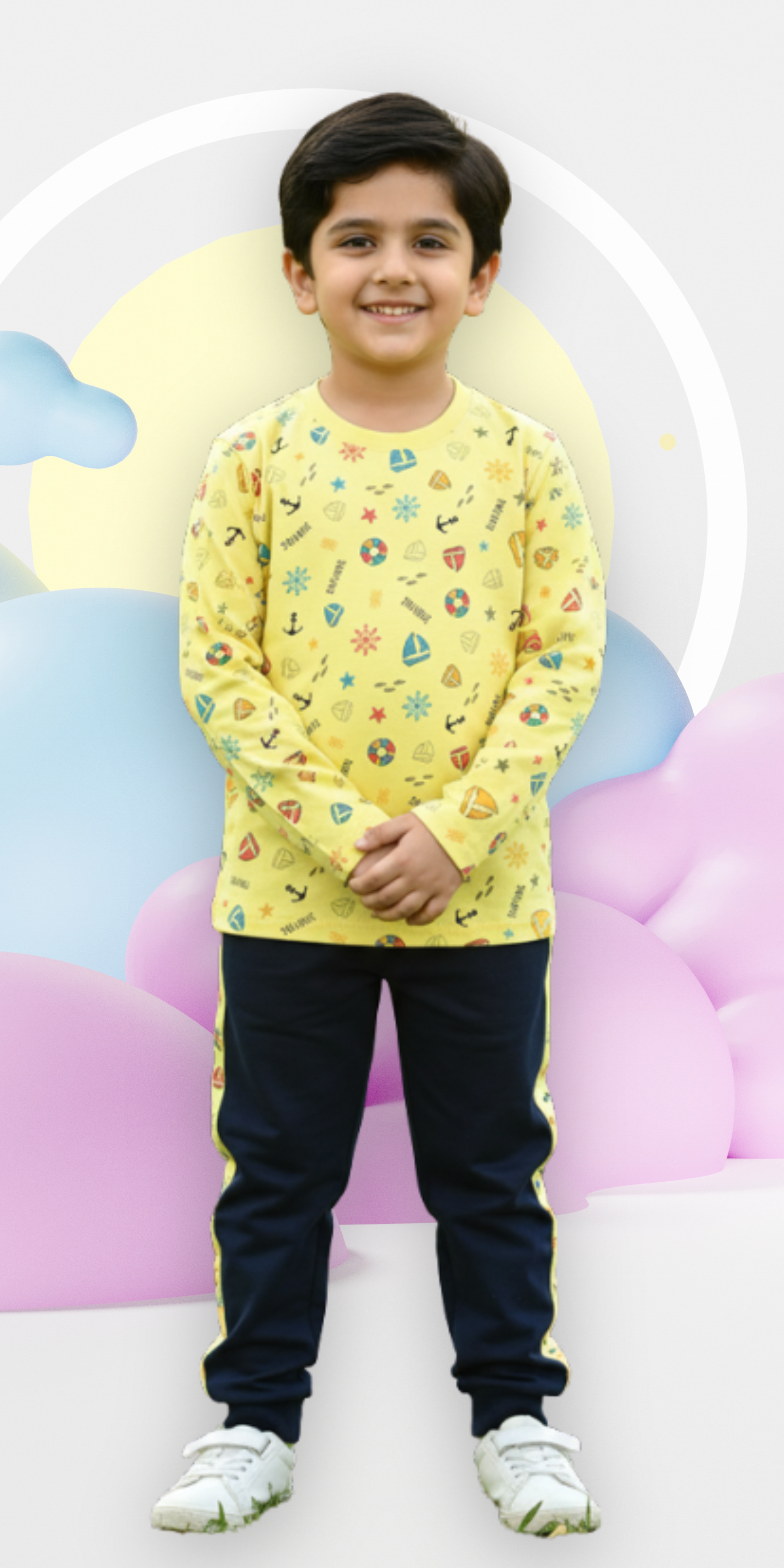 Moon Space Full Sleeves T-Shirt & Pyjama Set