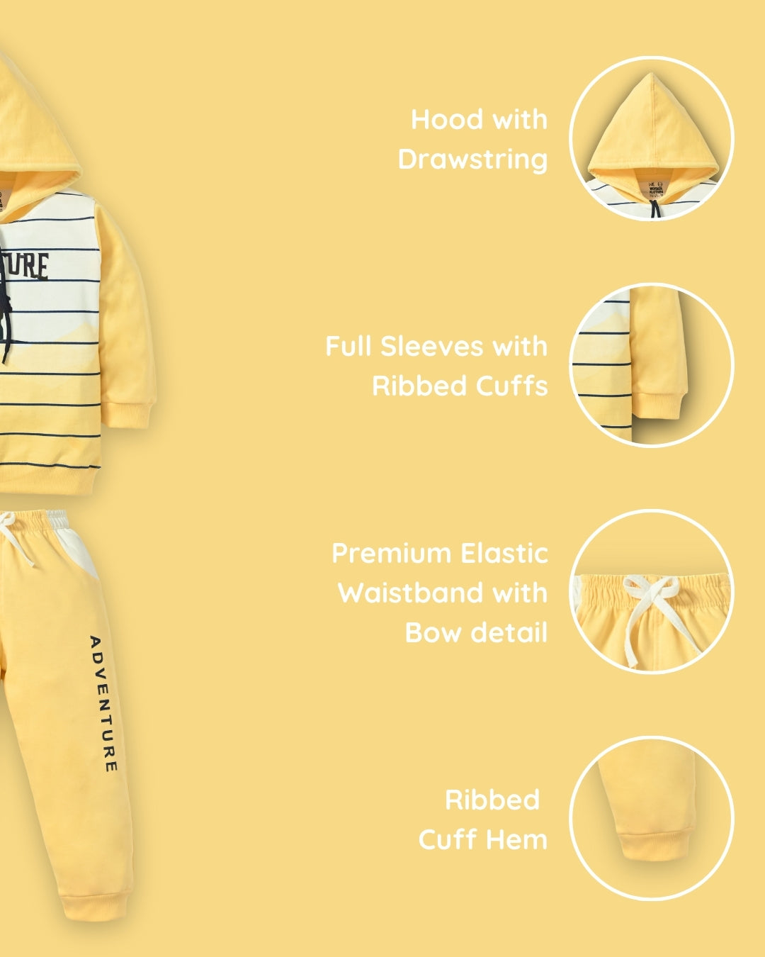 Adventure Full Sleeves Hooded Sweatshirt & Joggers Set | Yellow