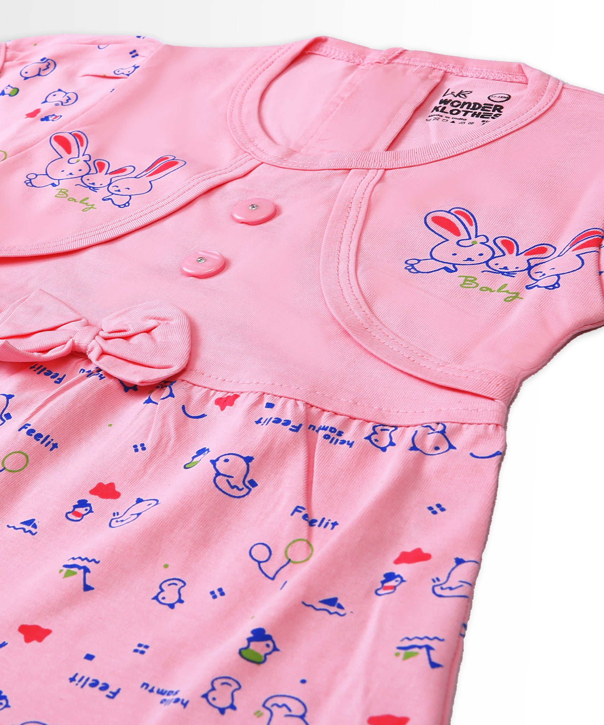 Baby Birds Half Sleeves Frock & Bloomer Pant Set | Pink