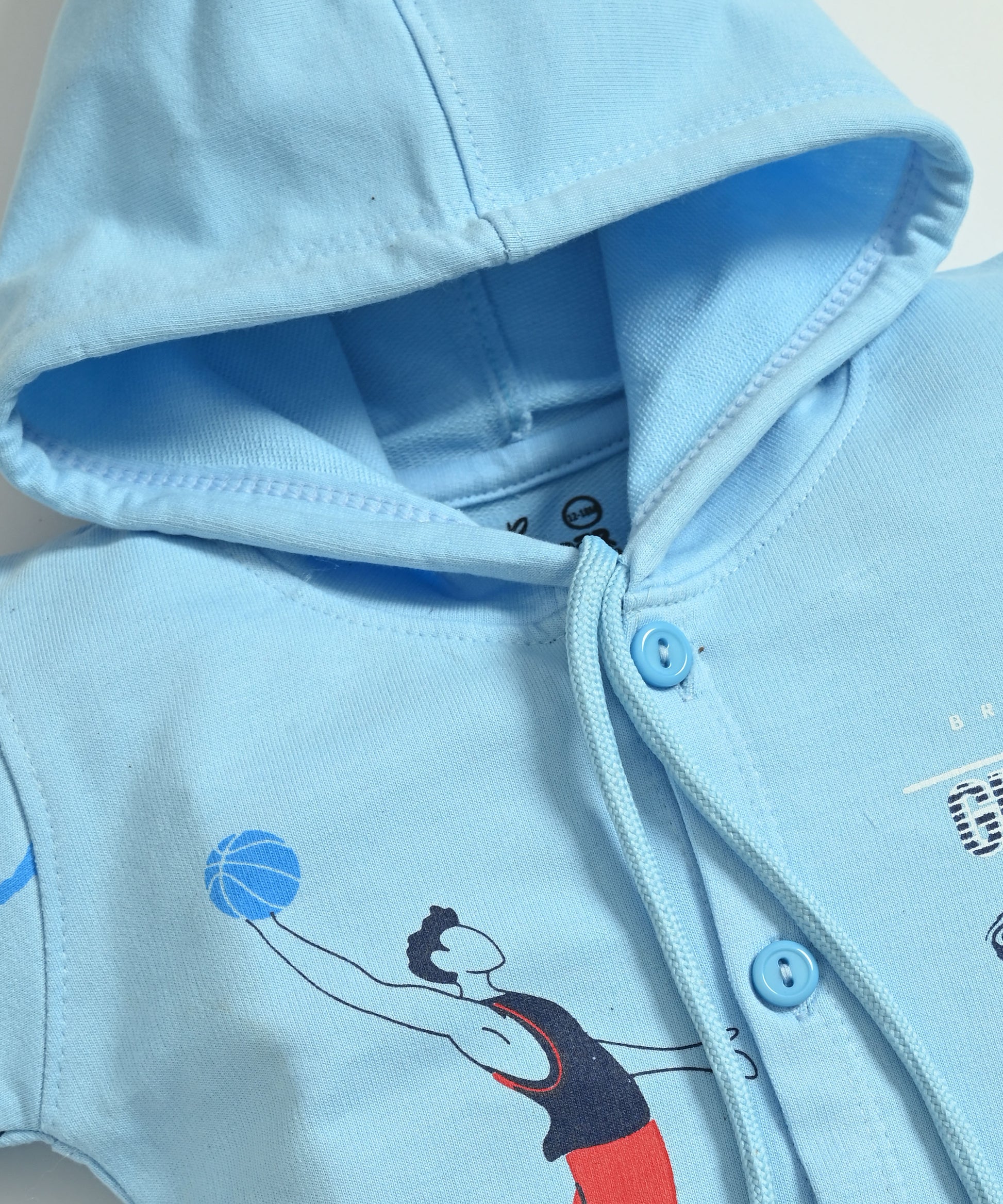 Basketball Full Sleeves Front Open Hooded Sweatshirt & Joggers Set | Blue