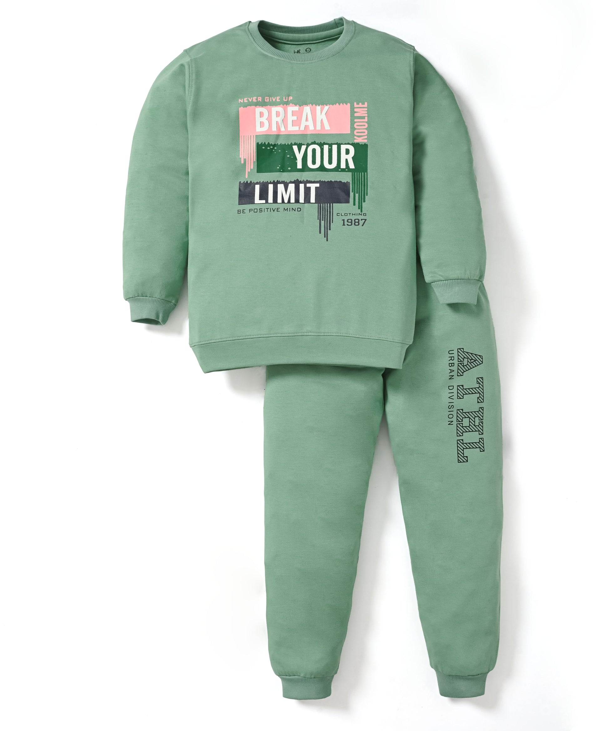 Break Your Limit Full Sleeves Sweatshirt and Joggers Set | Green