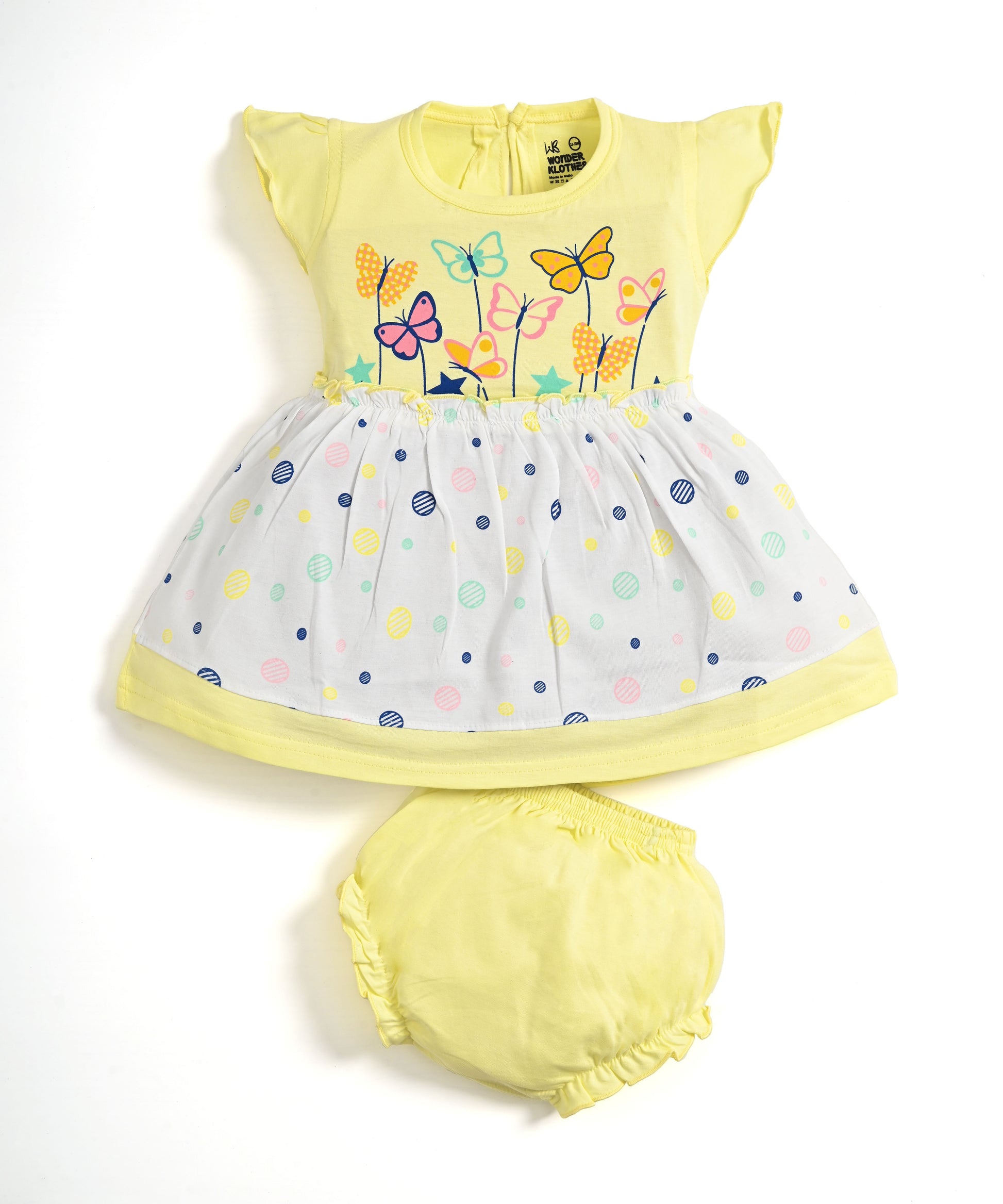 Butterfly Garden Short Sleeves Frock & Bloomer Pant Set | Yellow