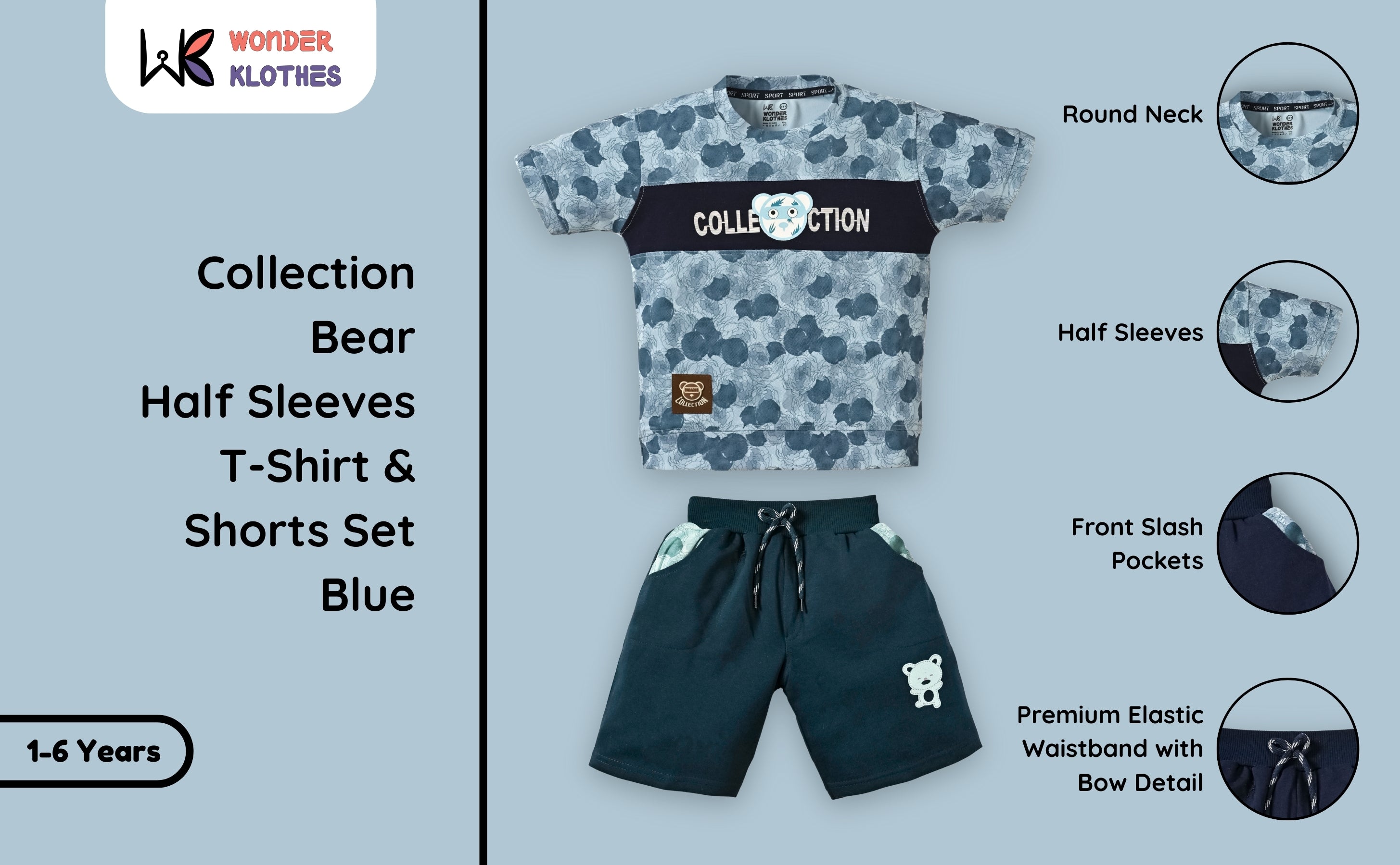 Collection Bear Half Sleeves T-Shirt & Shorts Set | Blue