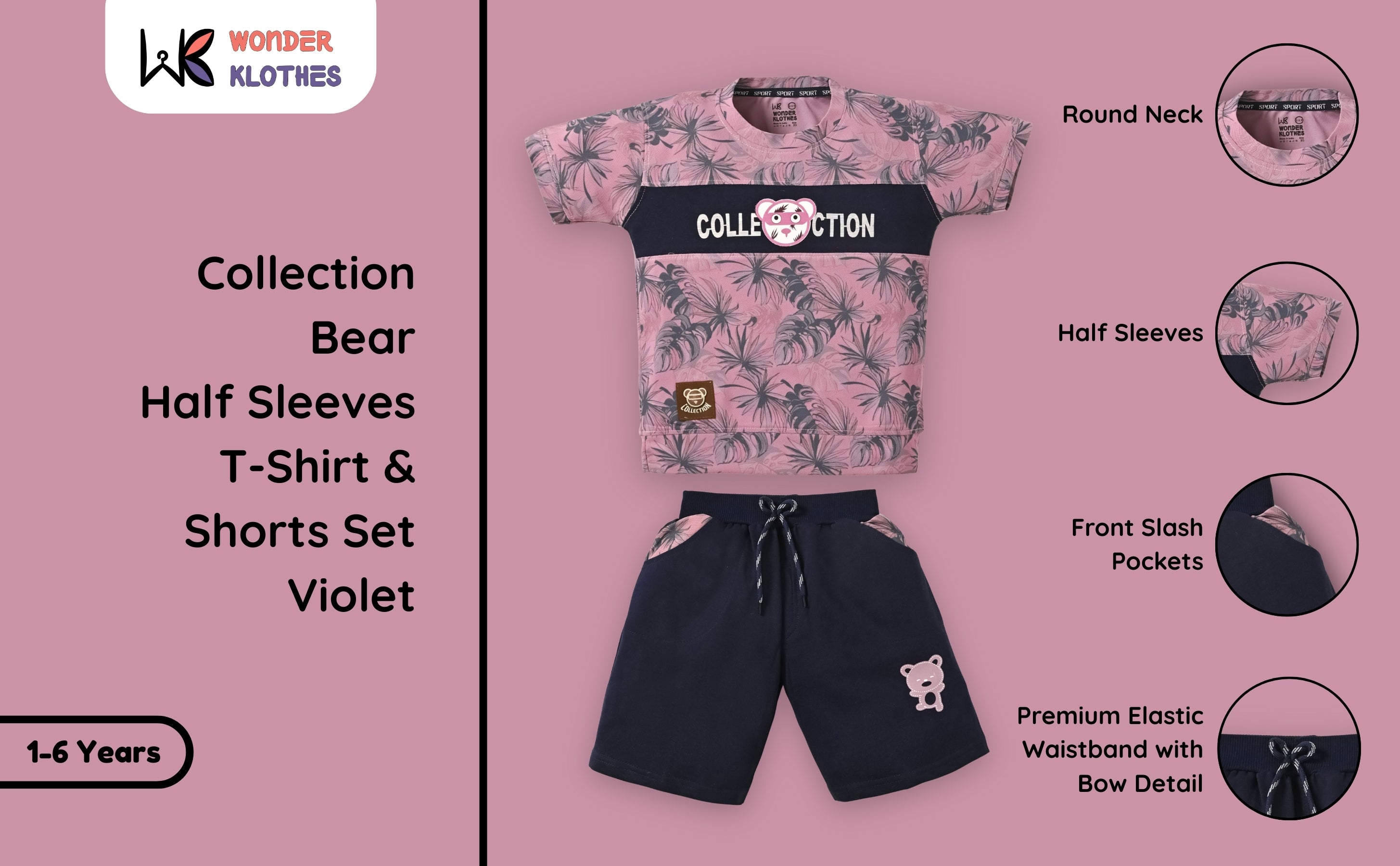 Collection Bear Half Sleeves T-Shirt & Shorts Set | Violet
