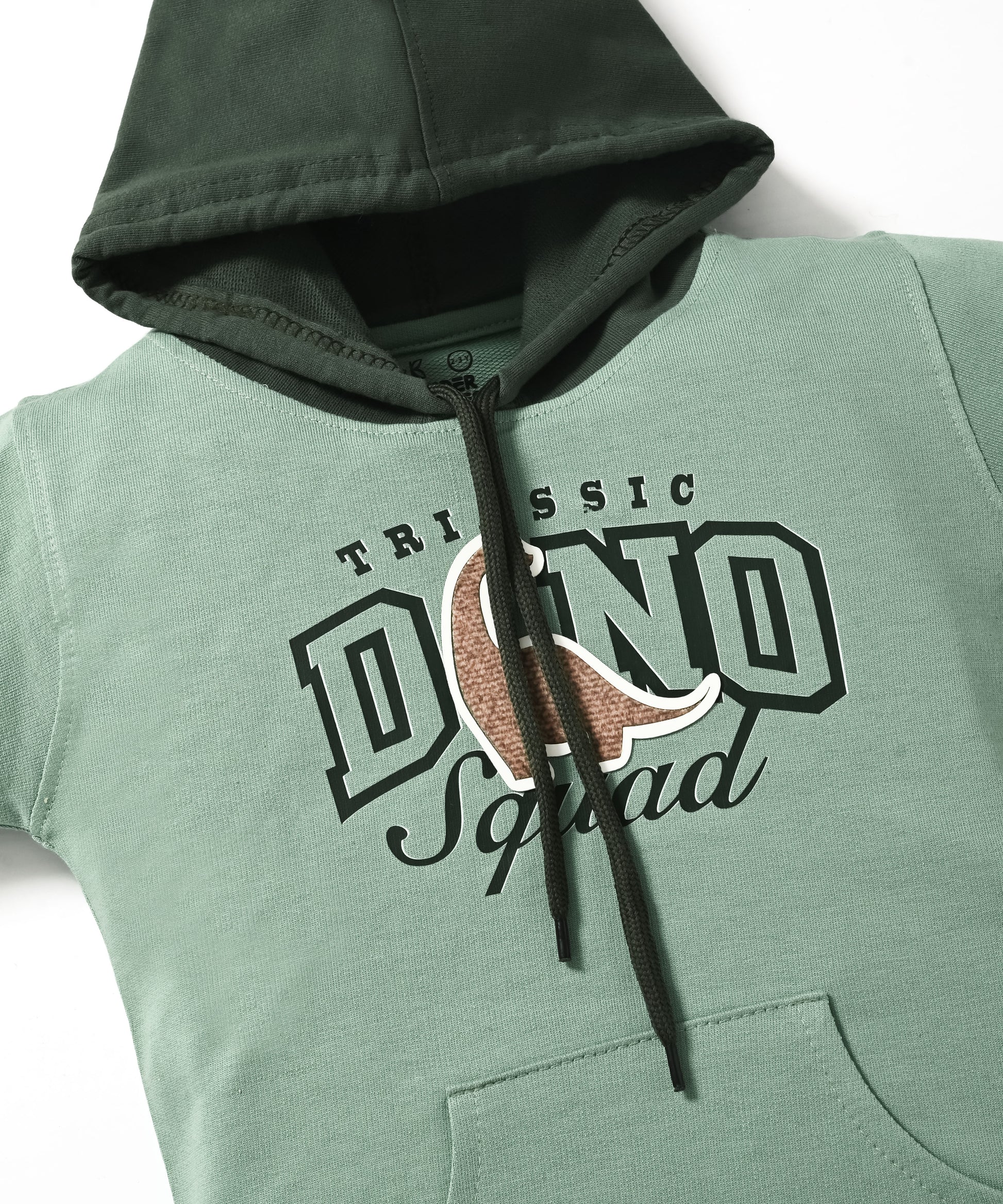 Dino Squad Full Sleeves Hooded Sweatshirt & Joggers Set | Green