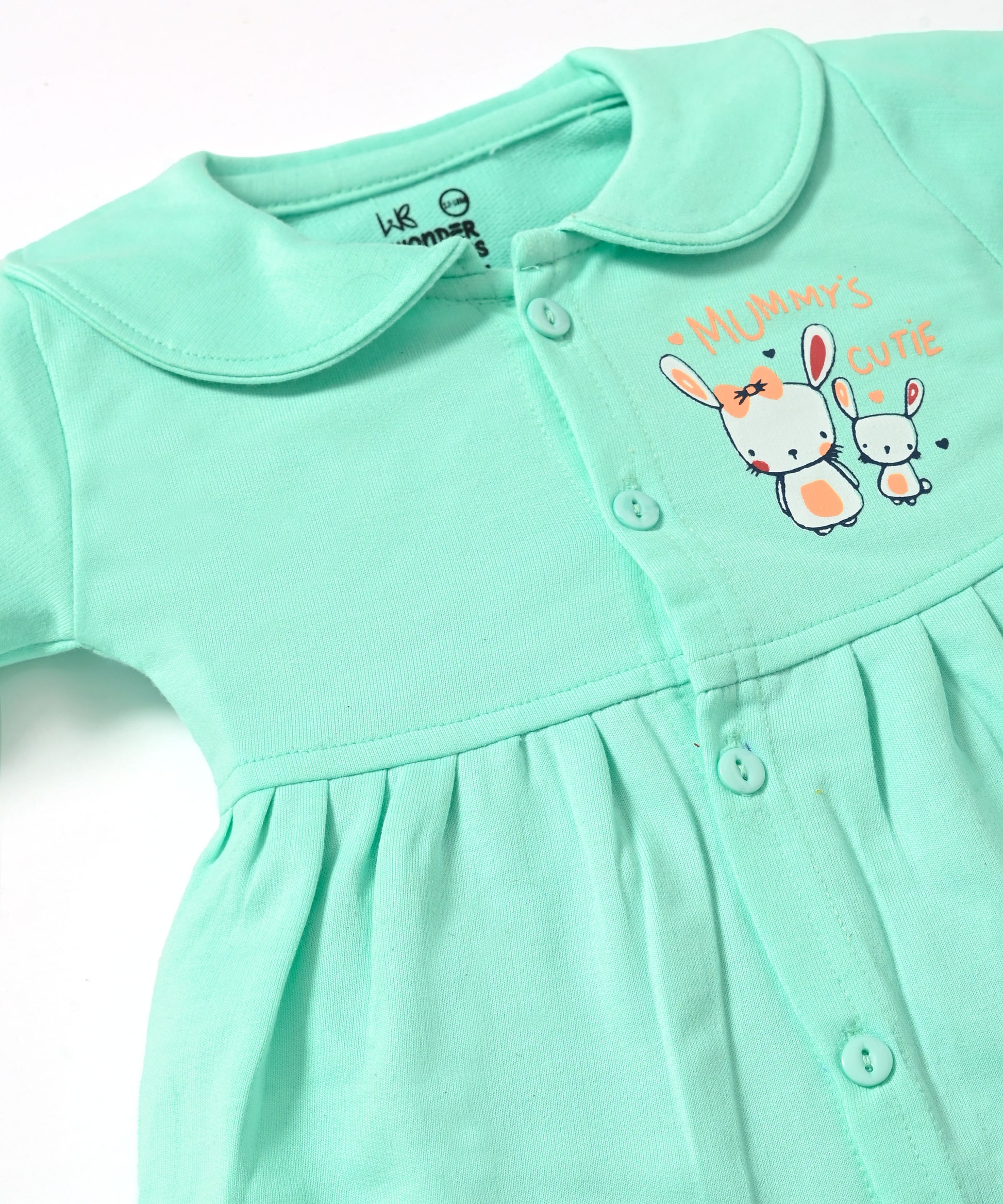 Mummy’s Cutie Full Sleeves Front Open Frock and Full Pant Set | Green