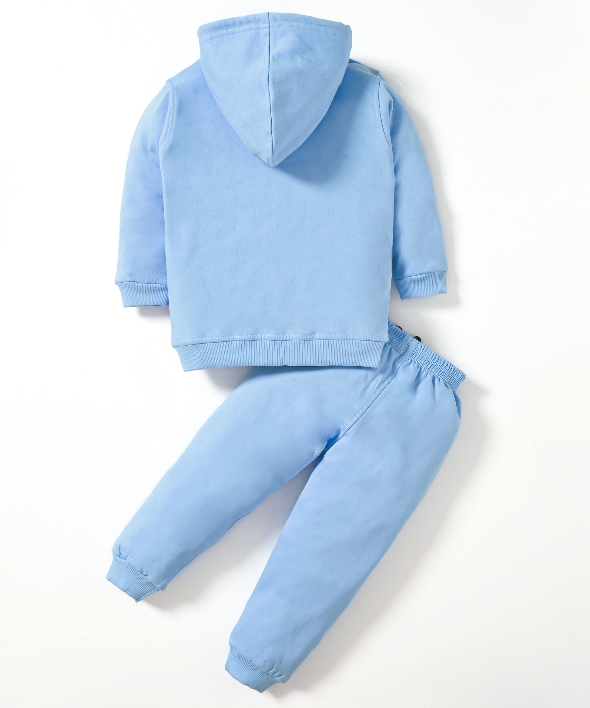 No Way Full Sleeves Fleece Hooded Sweatshirt and Joggers Set | Blue