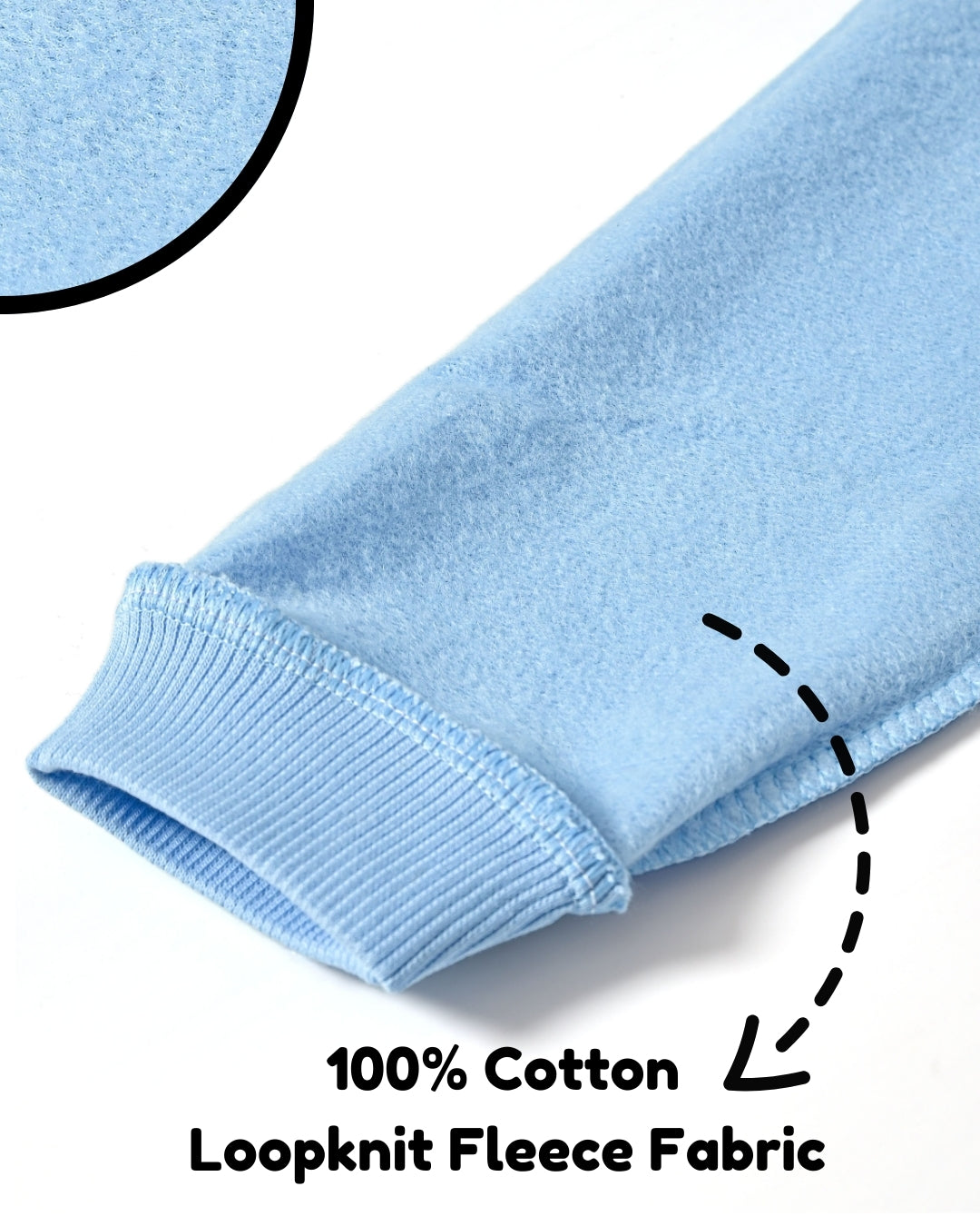 Get ready to slay the chill with the ultimate fit! If you’re scouting for the cosiest winter clothes for kids, this set is what you need. Crafted from premium 100% Cotton Loopknit Fleece Fabric, it’s soft, breathable, and gives comfy vibes without being heavy. This kids winter wear set is packed with sick details like a hood with a drawstring and snug ribbed cuff hems to keep the warmth locked in.