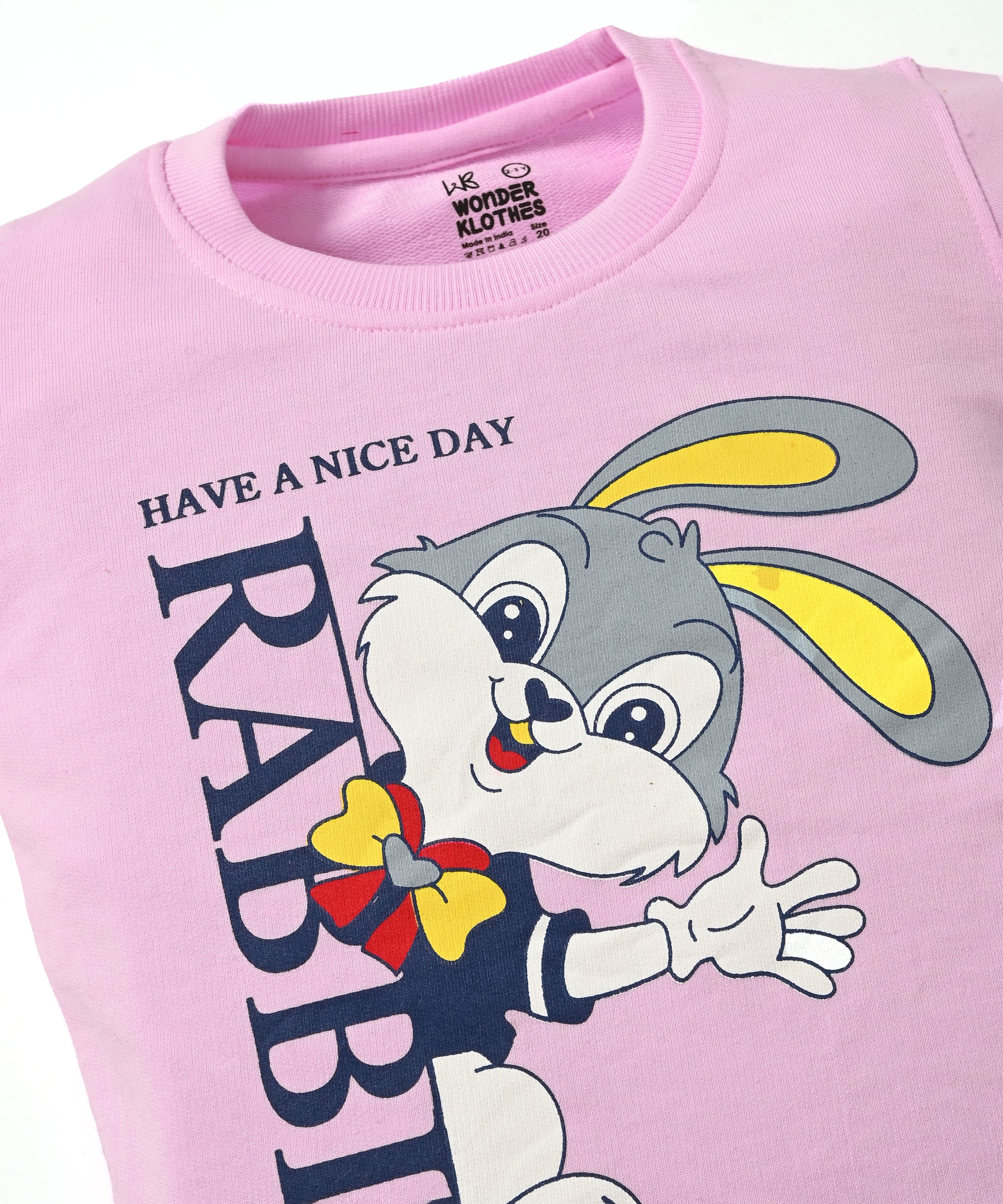 Rabbit Full Sleeves Sweatshirt and Joggers Set | Pink