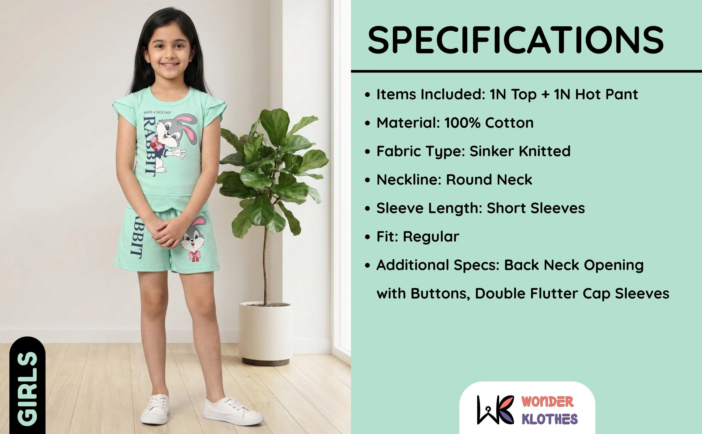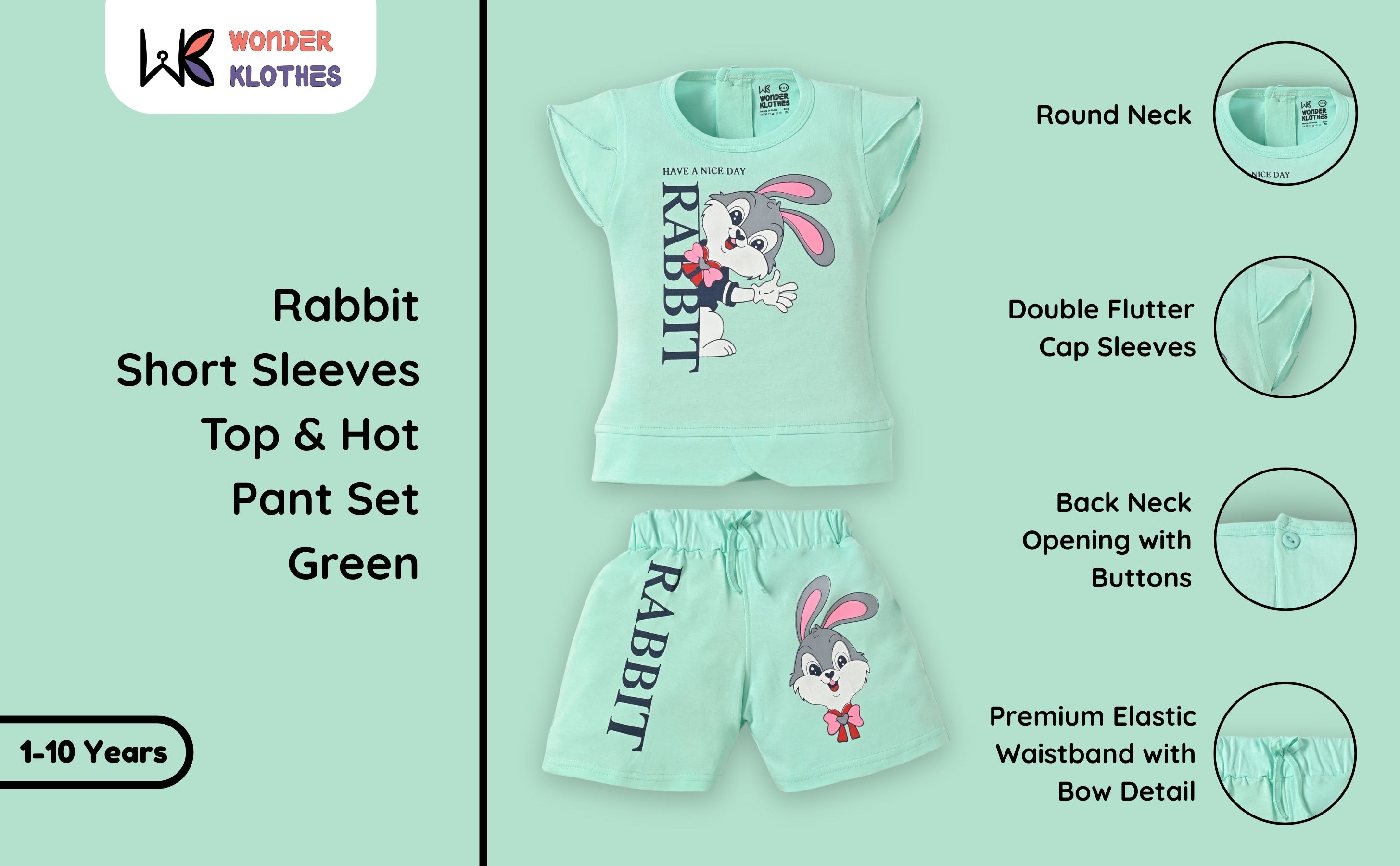Rabbit Short Sleeves Top & Hot Pant Set | Green