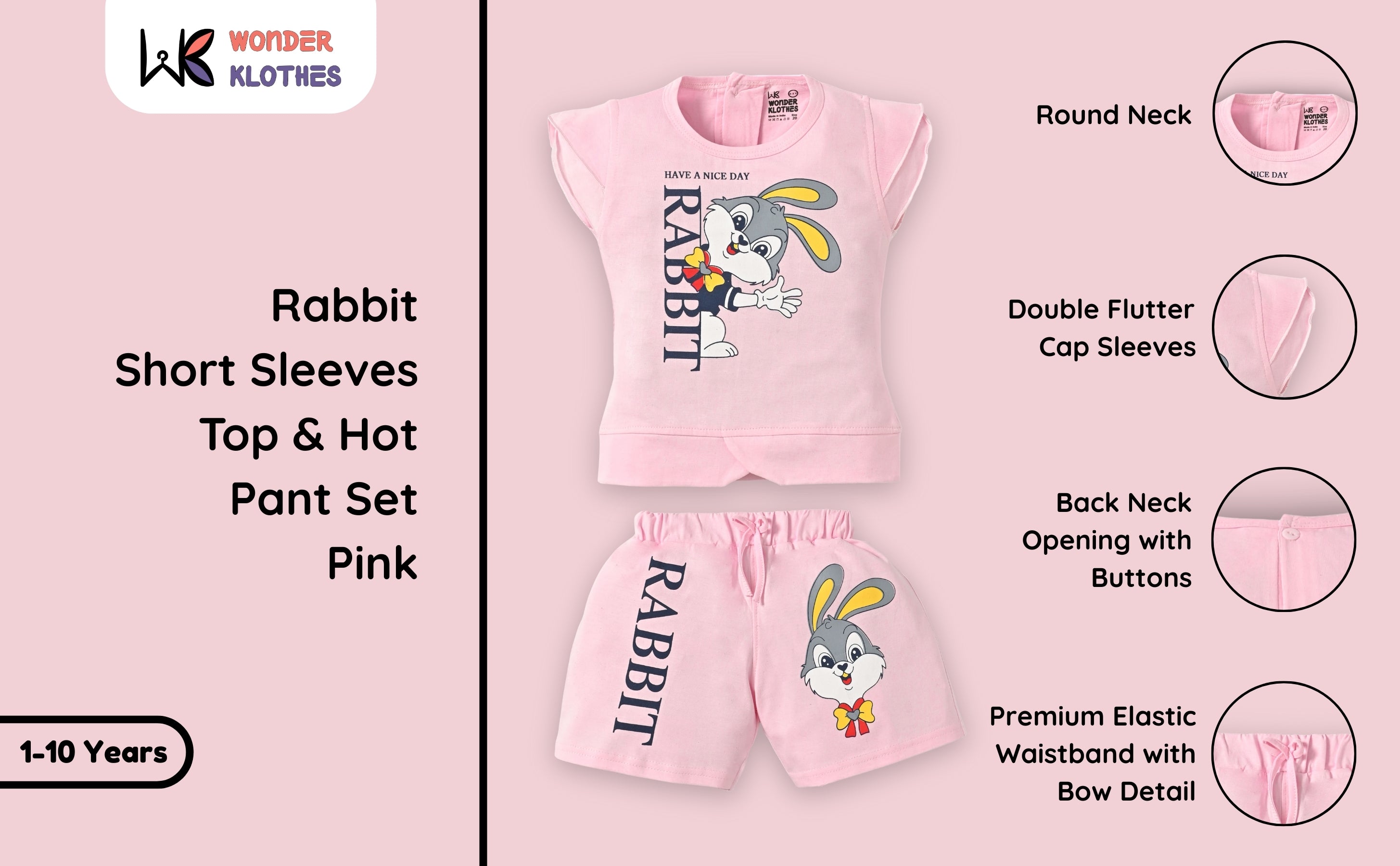 Rabbit Short Sleeves Top & Hot Pant Set | Pink