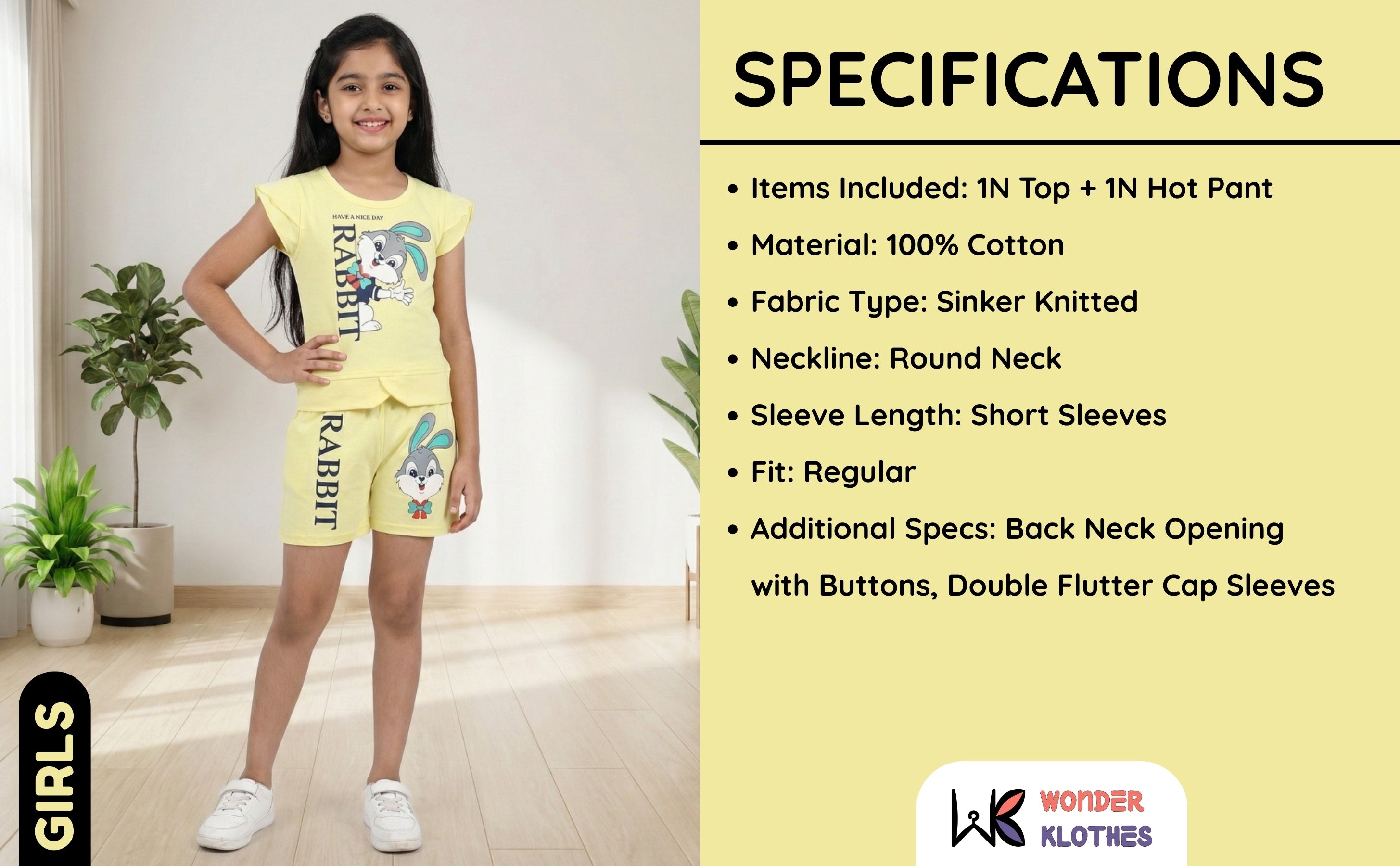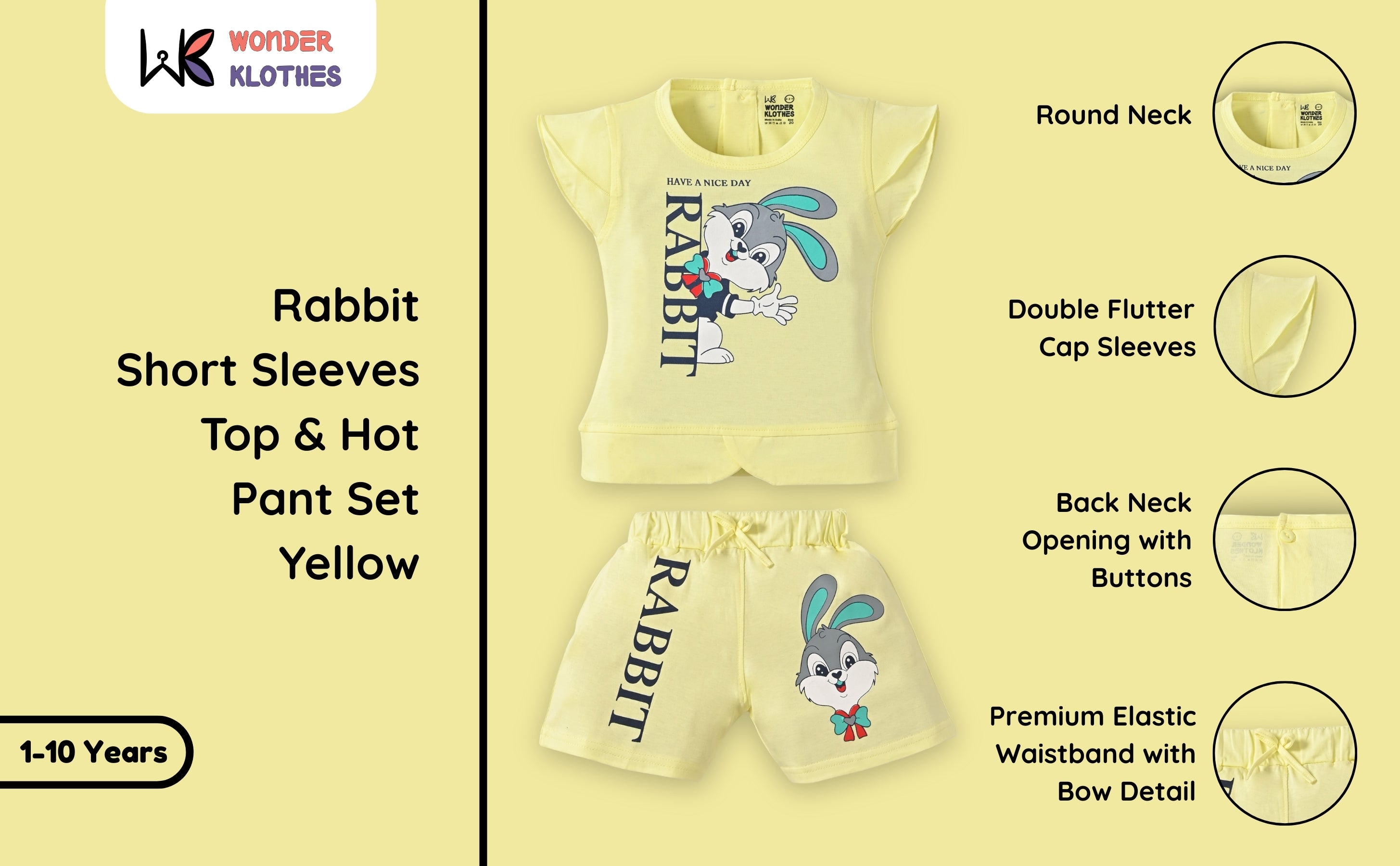 Rabbit Short Sleeves Top & Hot Pant Set | Yellow