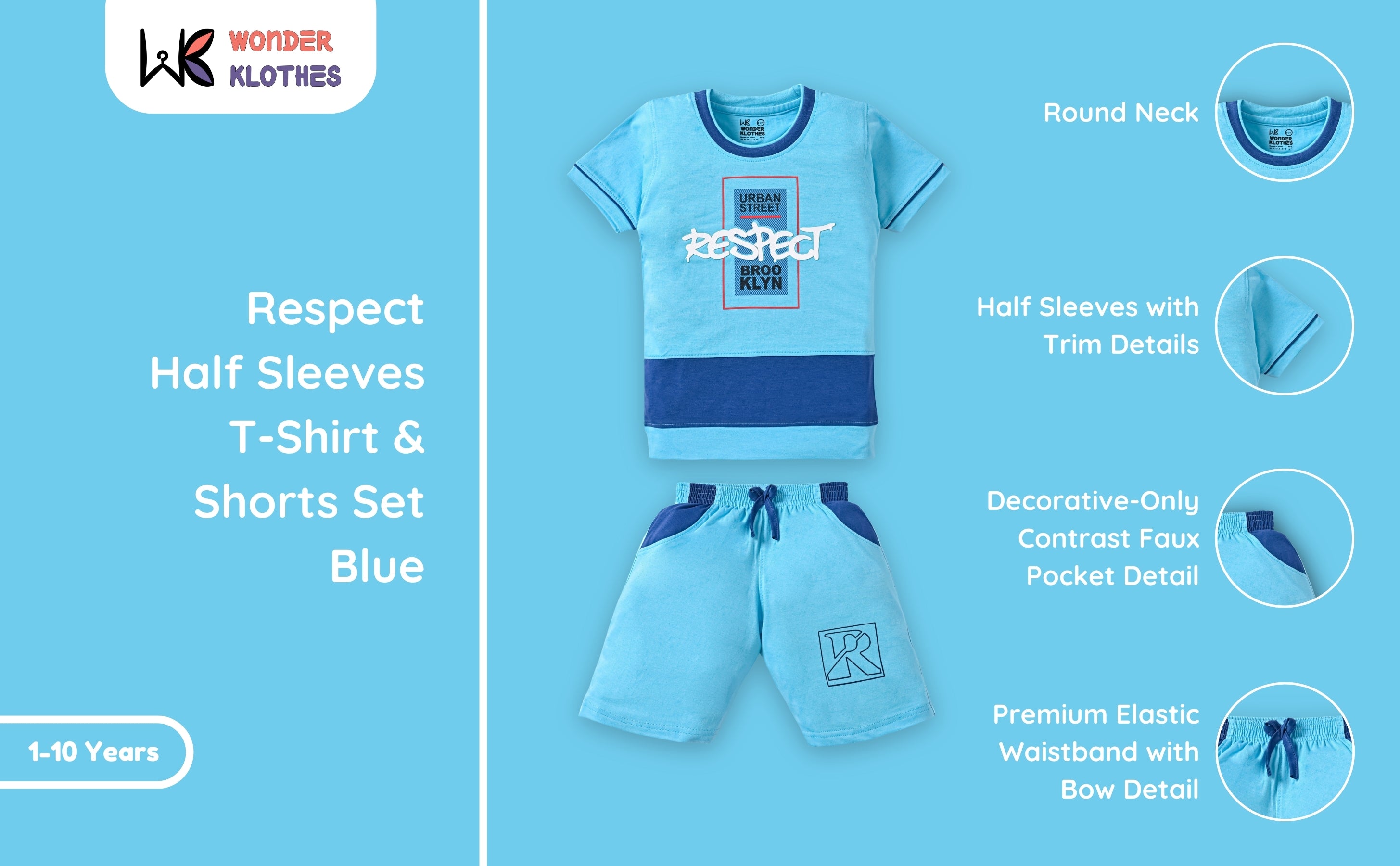 Respect Half Sleeves T-Shirt & Shorts Set | Blue