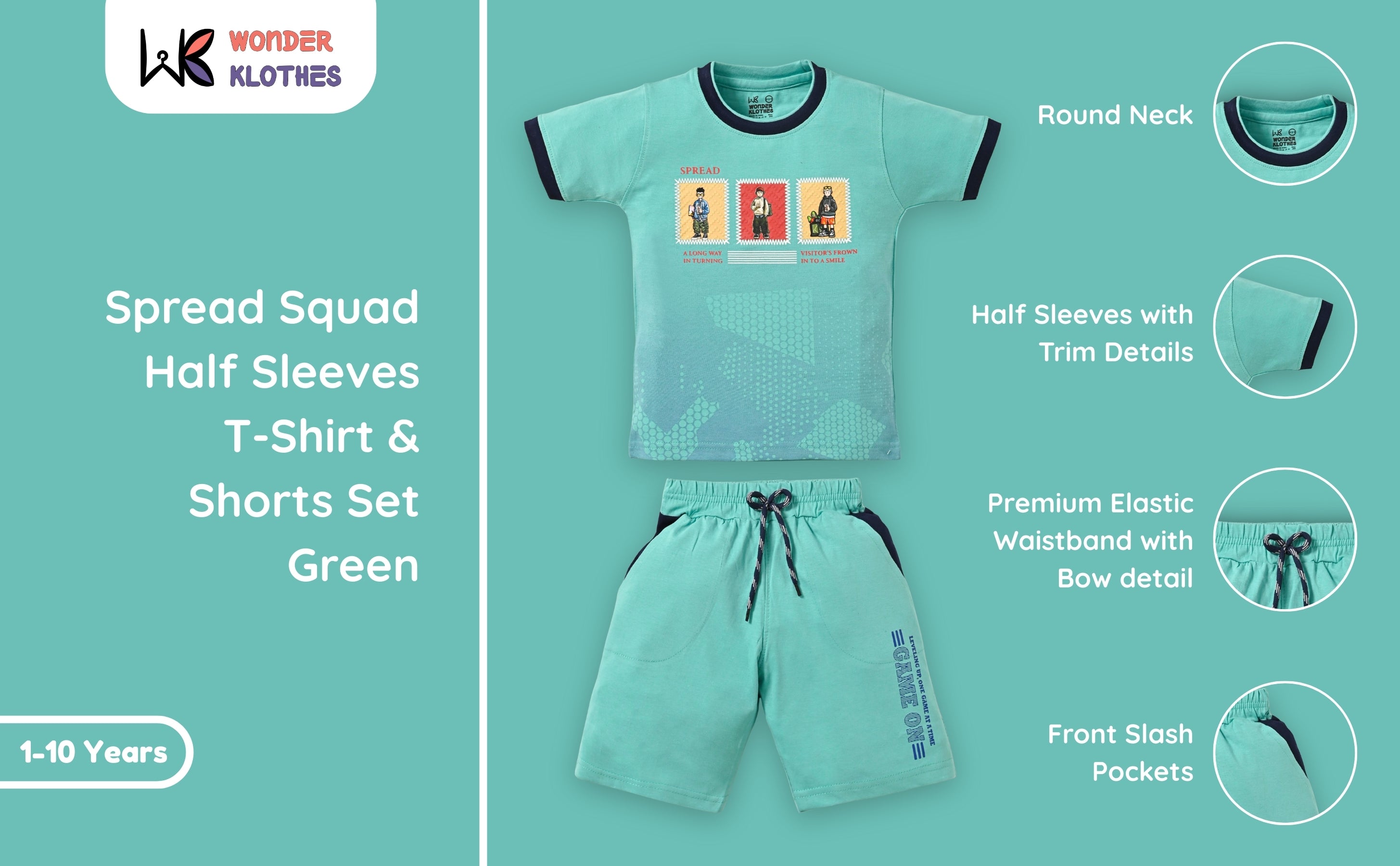 Spread Squad Half Sleeves T-Shirt & Shorts Set | Green