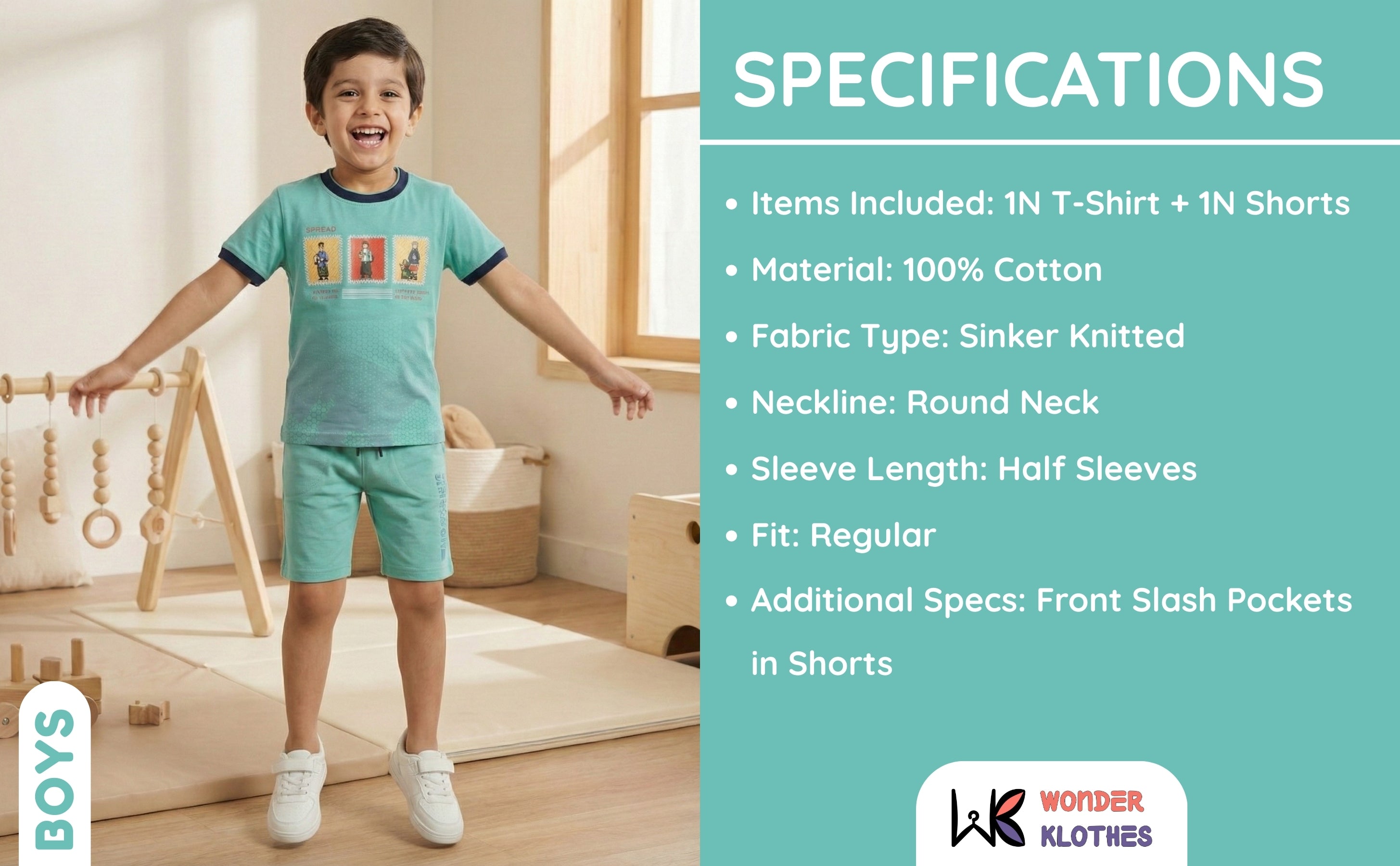 Upgrade his wardrobe with this kids t shirt set of boys. It is a brilliant example of modern kids dress boys fashion. As essential kids wear boys, the soft fabric ensures he stays cool while looking sharp. This kids boy dress is perfect for park runs or gaming sessions. Don't miss this playful boy dress!