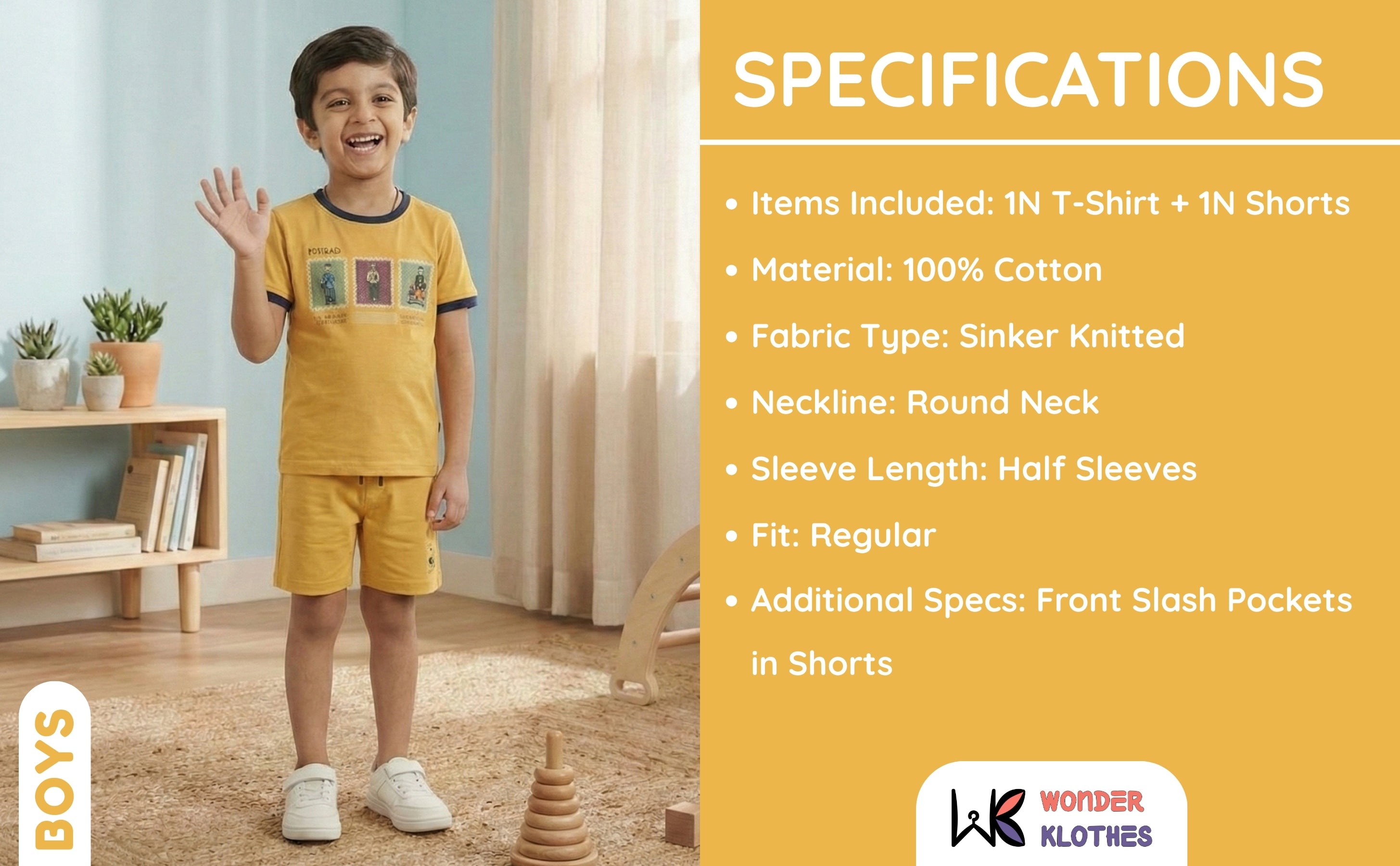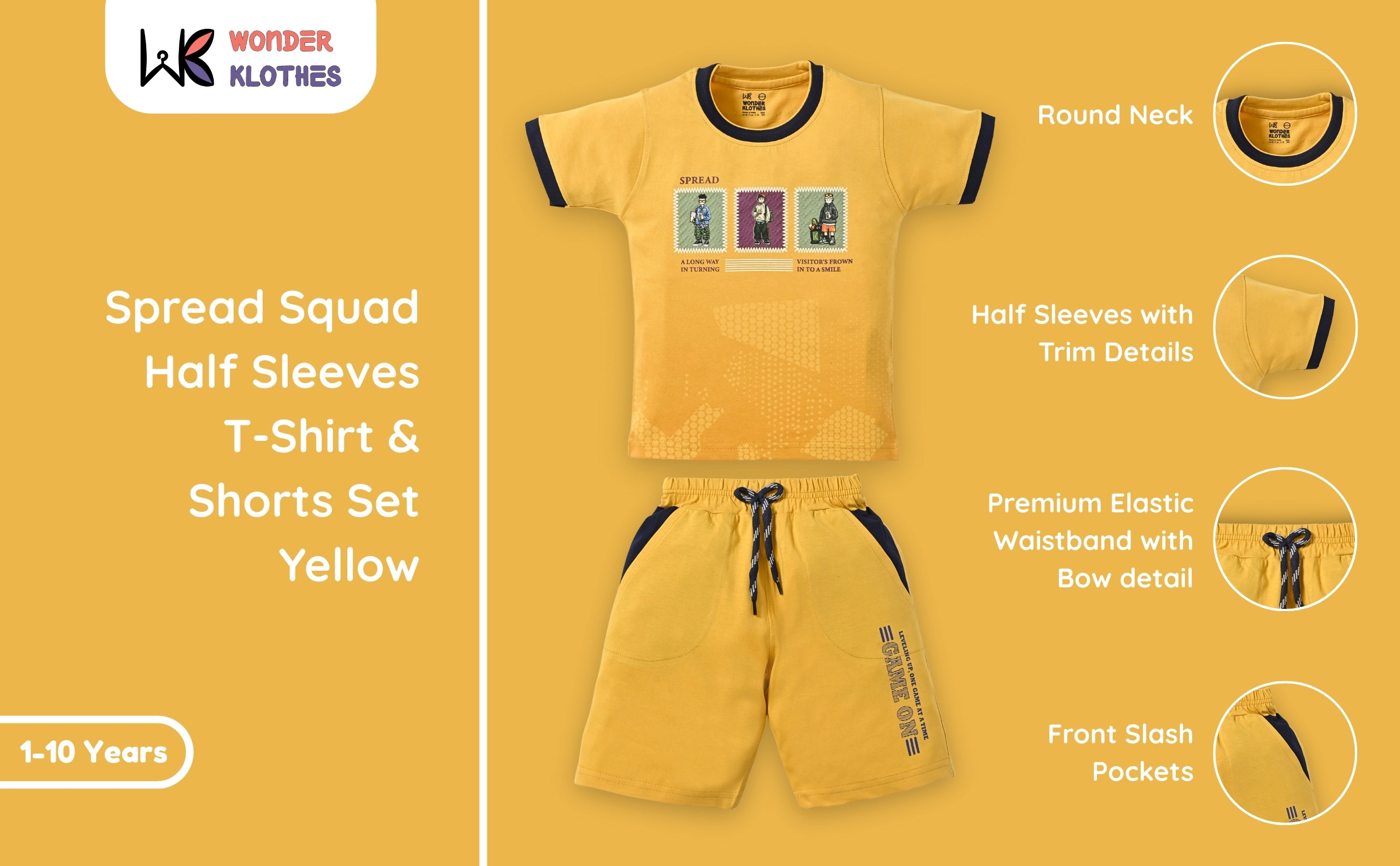 Spread Squad Half Sleeves T-Shirt & Shorts Set | Yellow