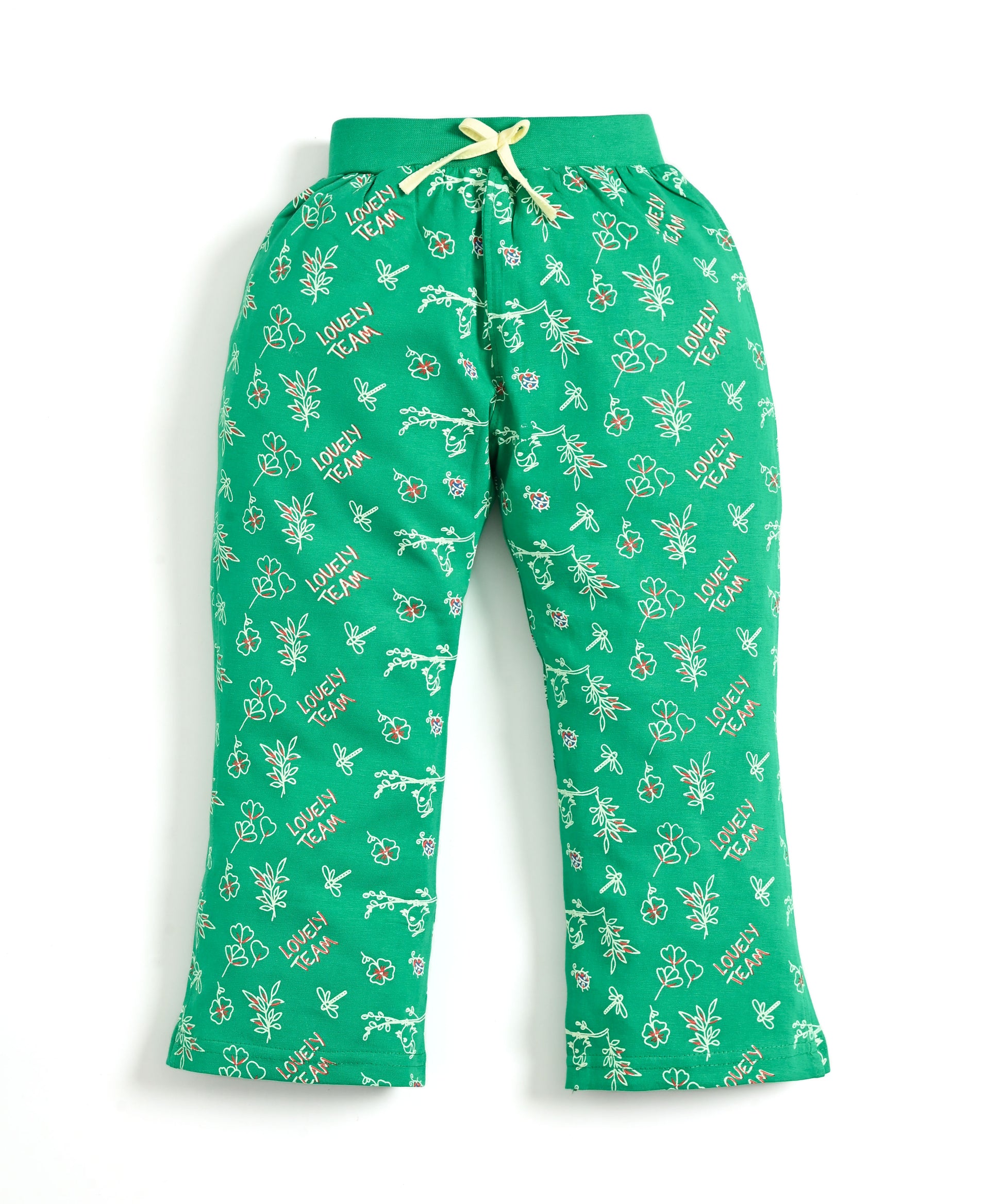 OMG, you need this! Introducing the adorable Sweet Bird Short Sleeves Top & Bootcut Pant Set—the perfect chill outfit for your little one. The top features flutter sleeves and the cutest "LOVELY TEAM, SWEET WEAR" graphic with a sweet bird perched on a branch. The comfy bootcut pants are decked out in a fun all-over print with bows and the text "LOVELY TEAM"!