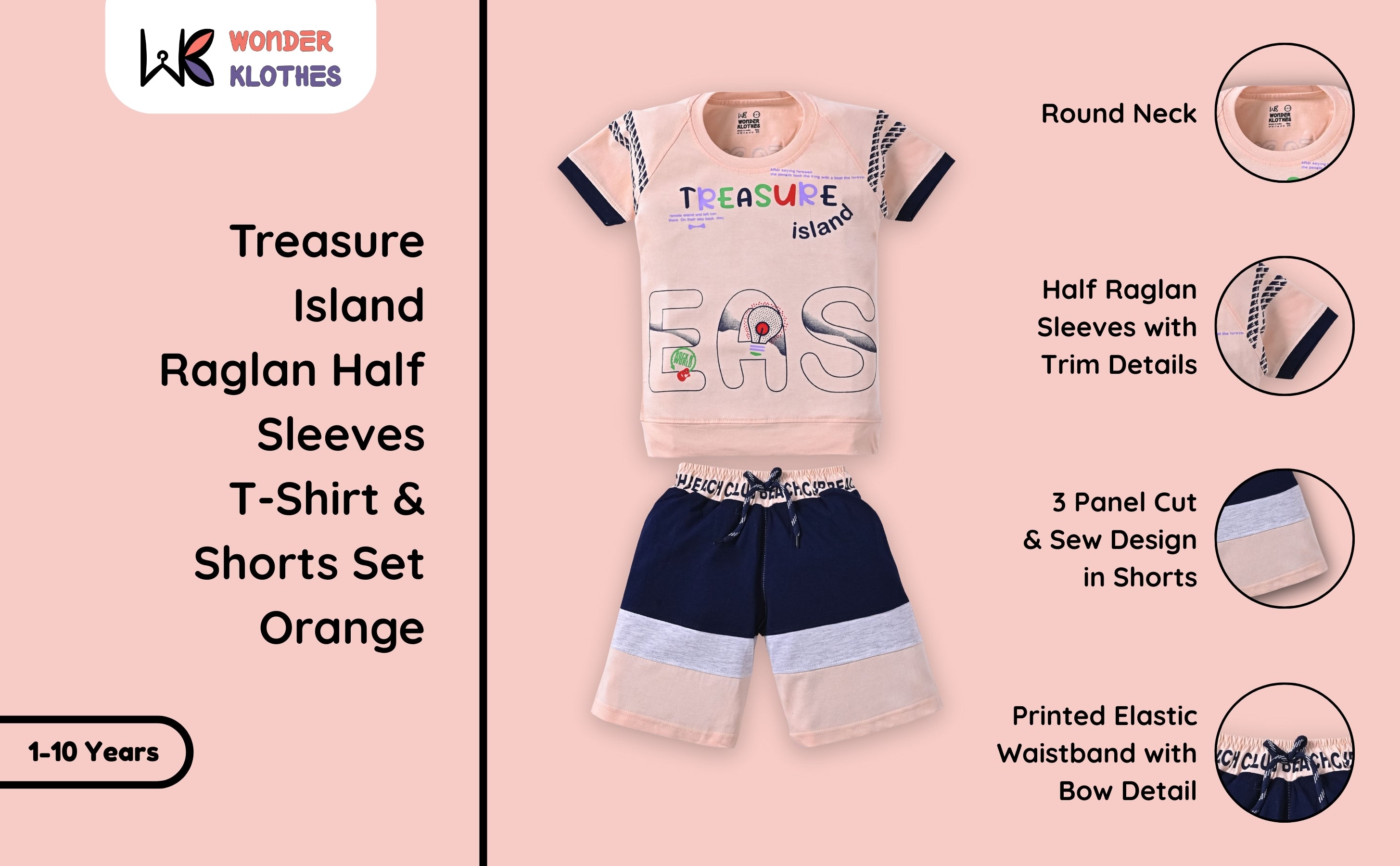 Treasure Island Raglan Half Sleeves T-Shirt & Shorts Set | Orange